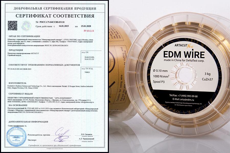 ООО "Арта Компонент" была пройдена процедура добровольной сертификации одного из наших основных продуктов — электроэрозионной проволоки собственного торгового знака ARTACUT.